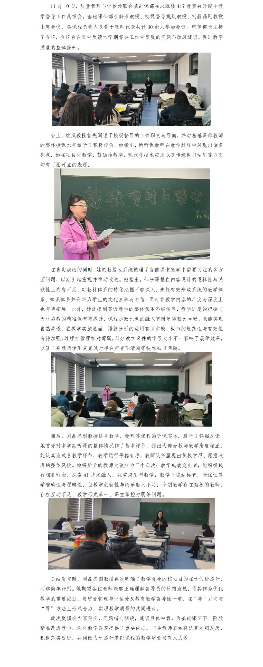 校院联合督导系列期中反馈会议系列报道 ——聚焦基础课部教学质量提升与持续改进