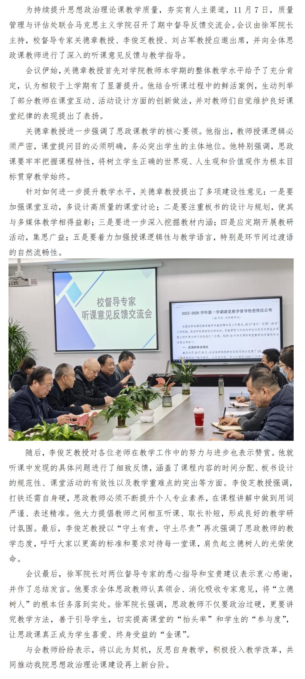 校院联合督导系列期中反馈会议系列报道 ——聚焦马克思主义学院教学质量提升与持续改进