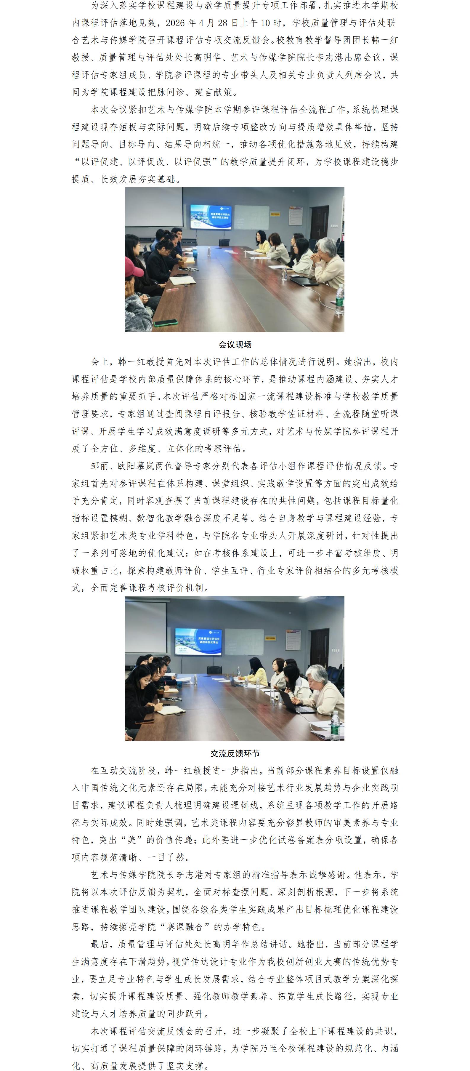我校召开2025-2026学年第二学期艺术与传媒学院课程评估交流反馈会