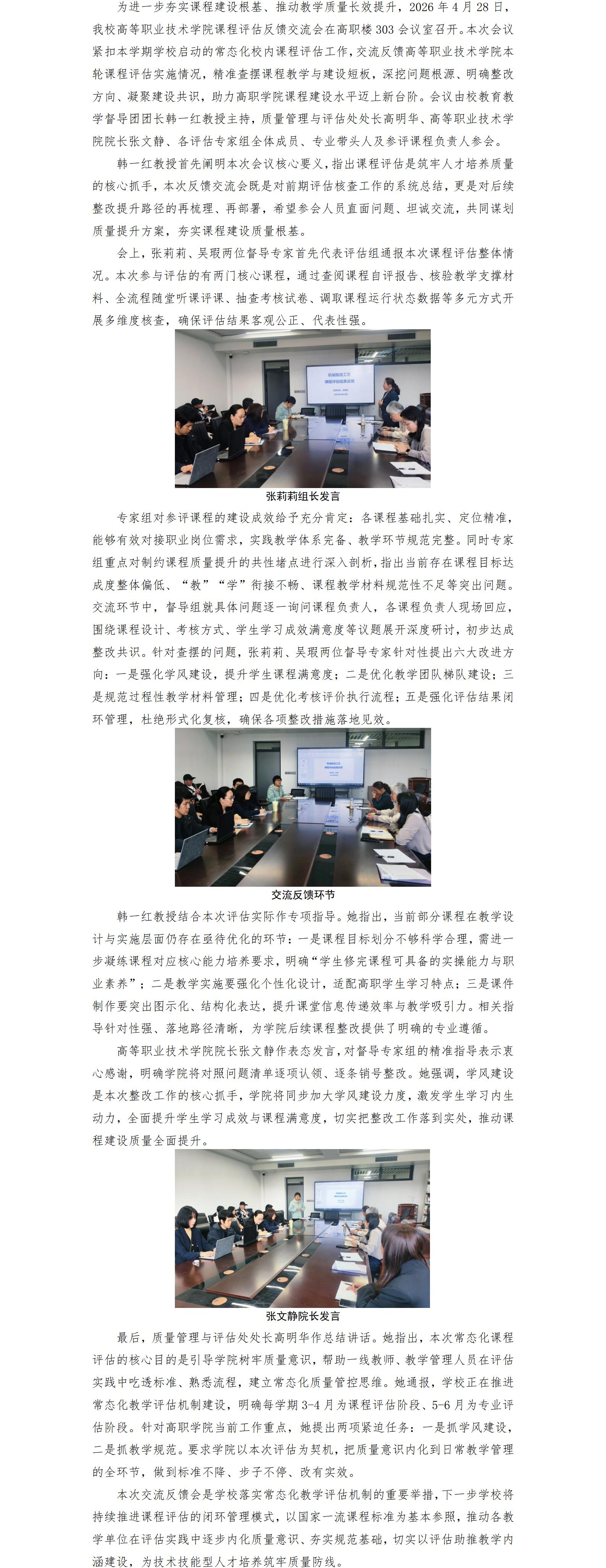 我校召开2025-2026学年第二学期高等职业技术学院课程评估交流反馈会