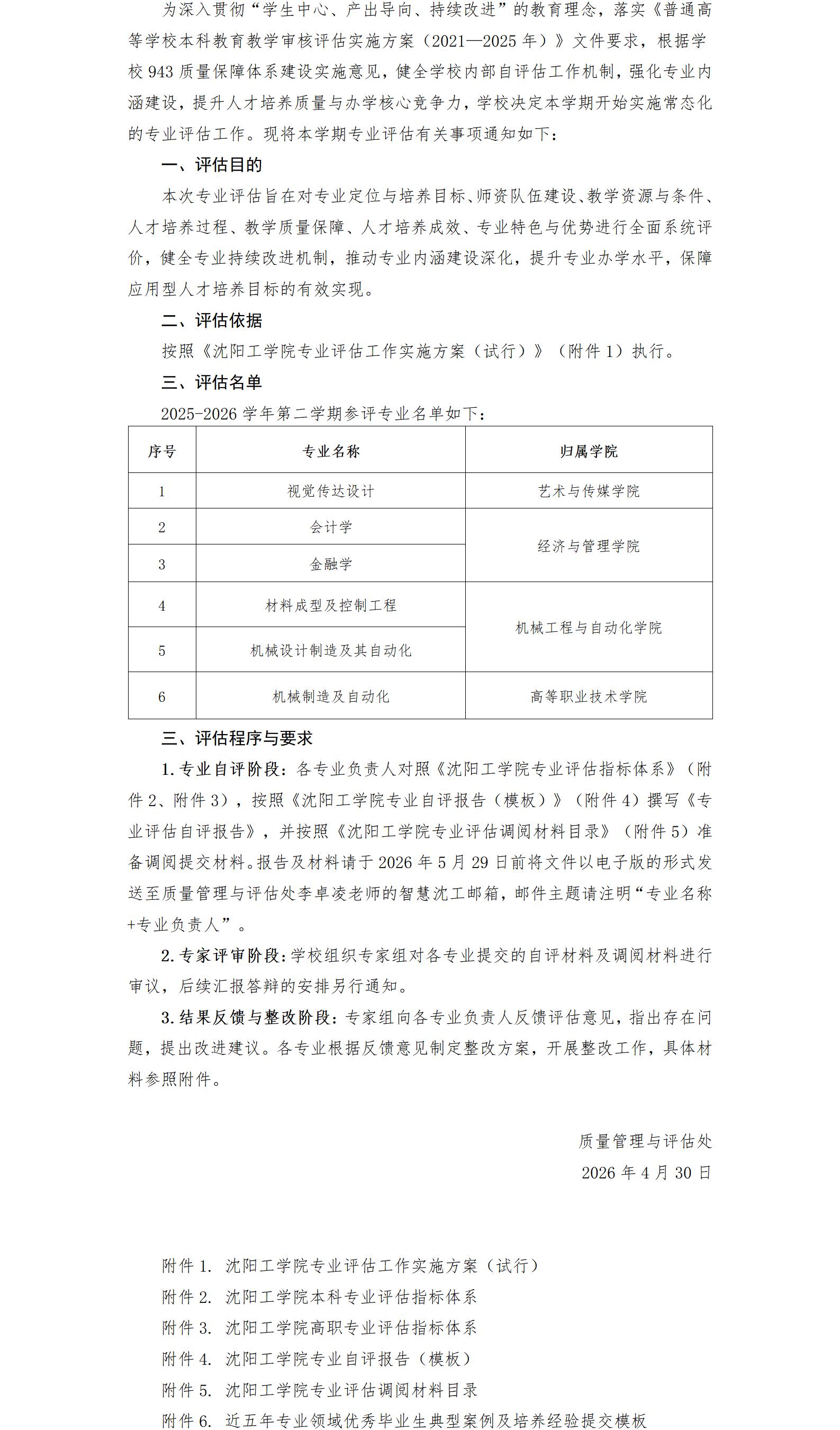 关于开展2025-2026学年第二学期专业评估工作的通知
