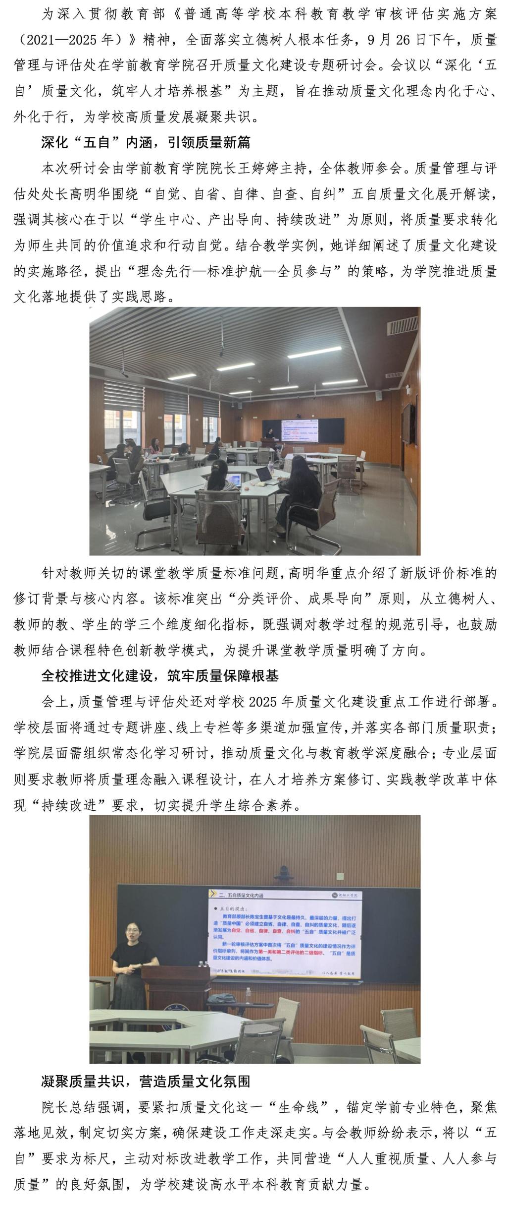 「质量文化建设」我校质量文化建设系列活动走进学前教育学院