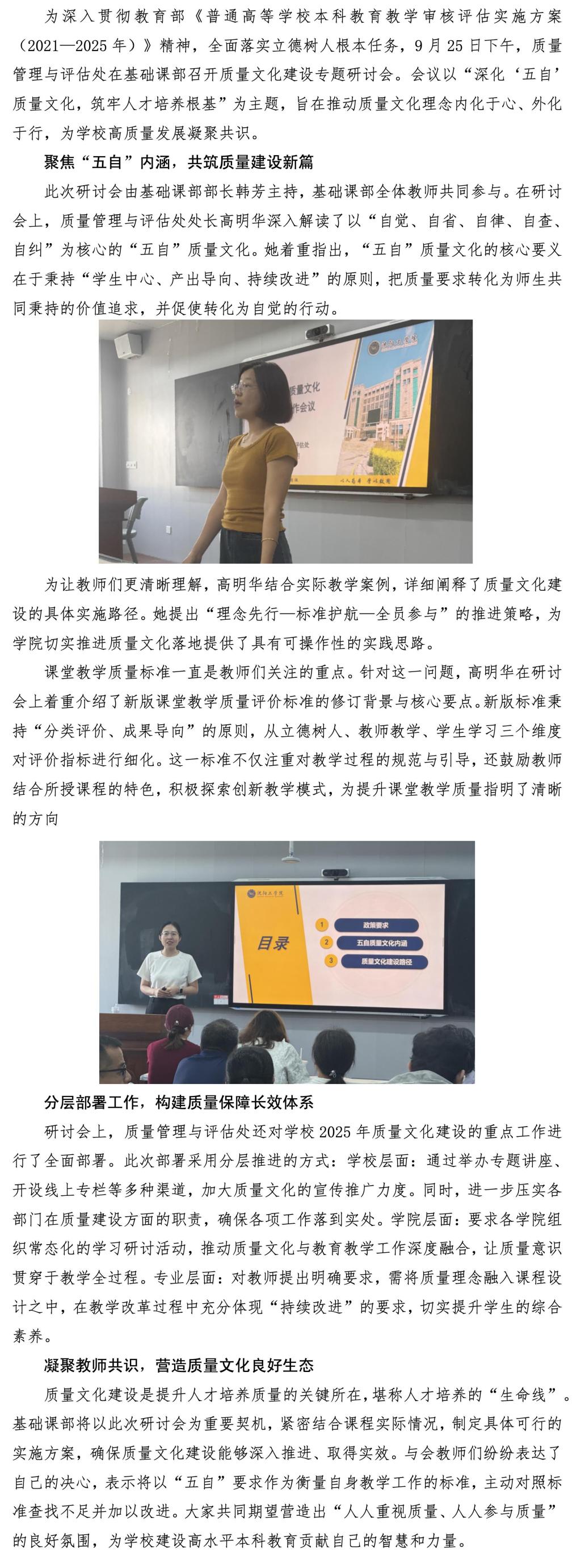 「质量文化建设」我校质量文化建设系列活动走进基础课部