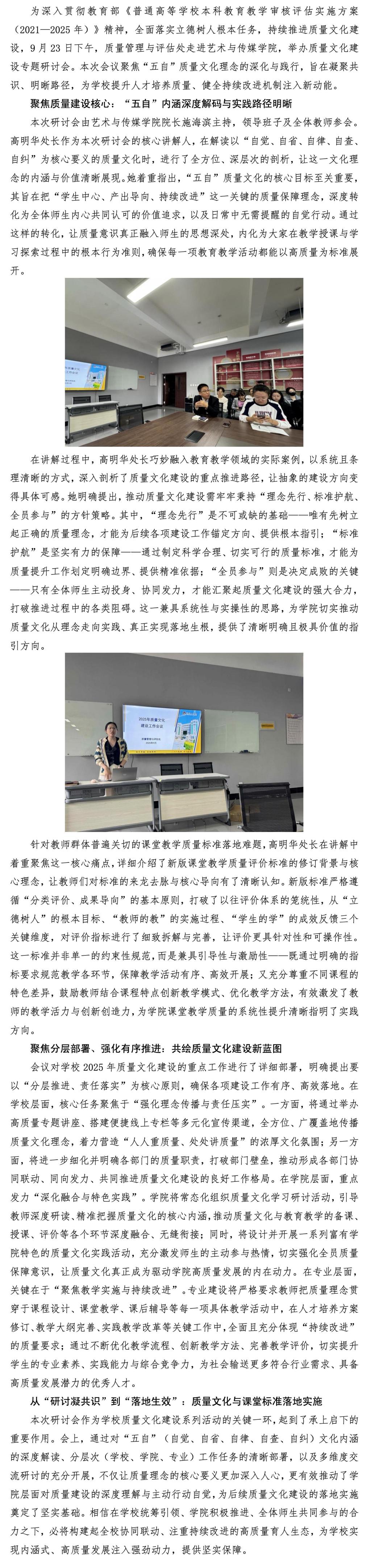 「质量文化建设」我校质量文化建设系列活动走进艺术与传媒学院