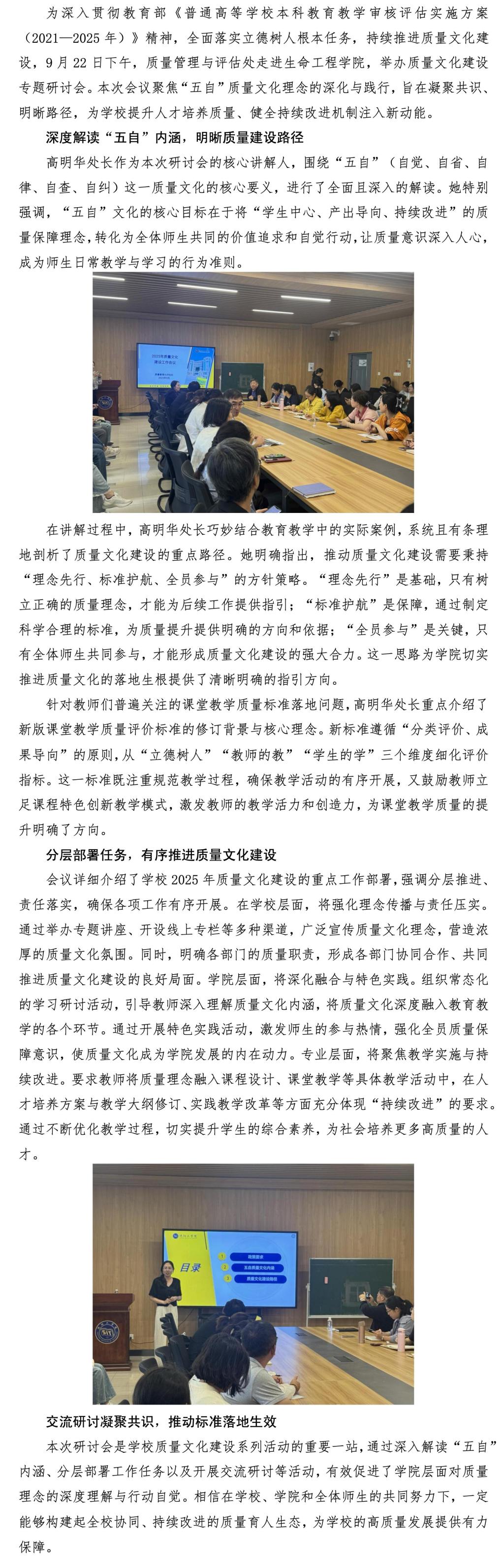 「质量文化建设」我校质量文化建设系列活动走进信息与控制学院